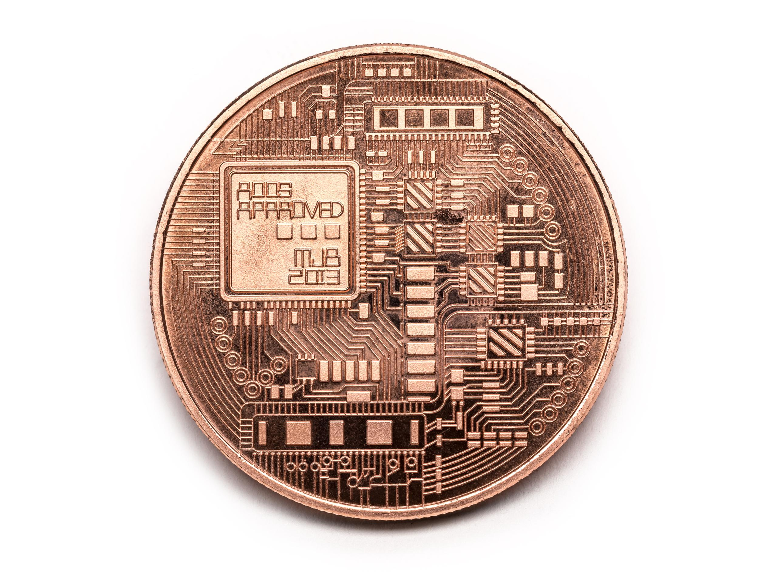 • Dizains: divpusējs – Bitcoin BTC simbols un mikroshēmas raksts