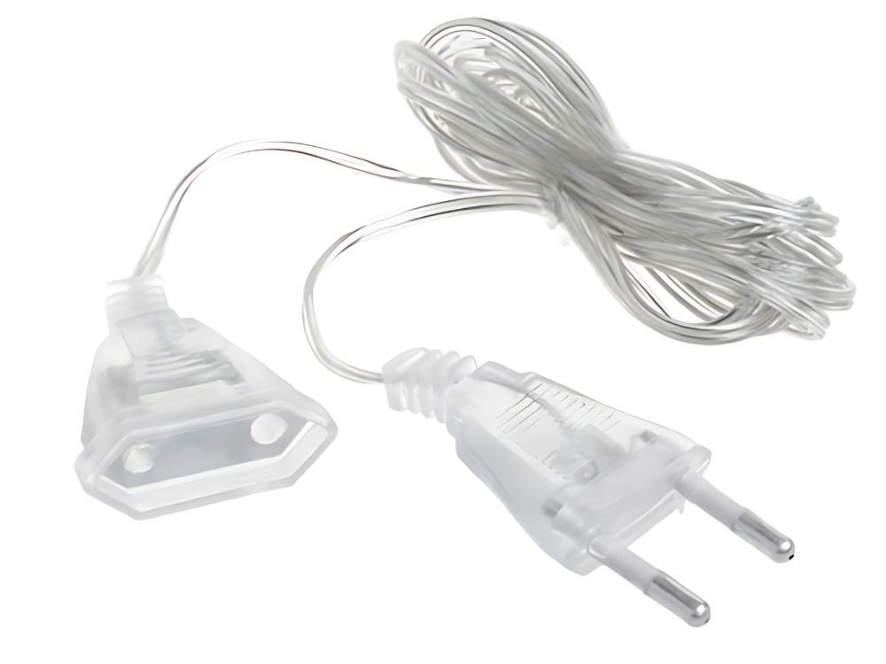 Caurspīdīgs pagarinātājs 3 metri ar Eiropas standarta divpolu spraudni un ligzdu, paredzēts lampām, nelielām sadzīves ierīcēm un dekoratīvajam apgaismojumam. Izturīga plastmasa, caurspīdīgs dizains, CE sertifikācija un ērta lietošana mājās, birojā vai pasākumu vidē.