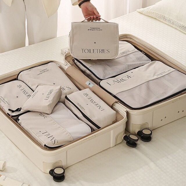 Ceļojuma somu komplekts – 8 daļīgs organizēšanas komplekts bagāžai, apģērbam un kosmētikai