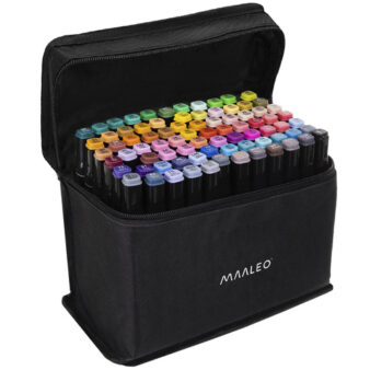Divpusējie spirta marķieri 80 gab. tiek piegādāti somā ar organizatoru, kas palīdz uzturēt kārtību un atvieglo ikdienas lietošanu. Marķieri ir vieglāk sakārtot, ātrāk atrast vajadzīgo krāsu un drošāk uzglabāt, lai komplekts kalpotu ilgāk un vienmēr būtu gatavs darbam.