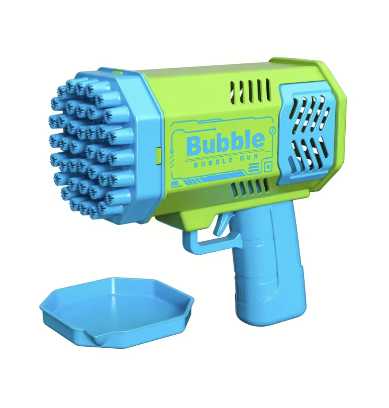 Burbuļpistole aprīkota ar 40 caurumiem, kas darbojas sinhroni, veidojot burbuļu lietu ar spēcīgu plūsmu. Iebūvētā LED gaisma padara rotaļu vēl efektīgāku – vakaros vai vājā apgaismojumā burbuļi izskatās kā mirdzoši burvju lodītes, kas rada neaizmirstamu efektu bērnu ballītēs, spēļu laukumos vai ģimenes piknikos.