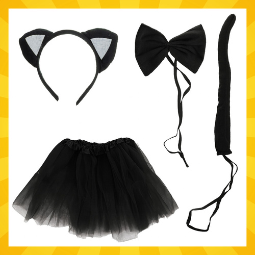 Kaķēna kostīms bērniem 4 daļas ir gatavs komplekts ātrai un glītai pārģērbšanās idejai pasākumiem, ballītēm un rotaļām. Komplektā ir viss nepieciešamais, lai izveidotu pilnvērtīgu kaķīša tēlu: tilla svārki, galvas lenta ar ausīm, aste un tauriņš. Kostīms ir viegls, ērts un paredzēts aktīvai kustībai, lai bērns var brīvi dejot, skriet un spēlēties, nepārdzīvojot par neērtu piegulumu.