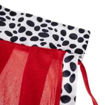 Komplektā ietilpstošais apmetnis ir galvenais vizuālais akcents. Sarkanā krāsa apvienojumā ar melni baltu mākslīgo kažokādas maliņu rada klasisku karaļa tēlu, ko bērni uzreiz atpazīst no pasakām un teātra izrādēm. Pateicoties garajām saitēm, apmetni var droši nostiprināt pie pleciem tā, lai tas labi turētos, bet vienlaikus būtu viegli noņemams, ja bērnam kļūst karsti.