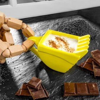 Krūzes rokturis ir veidots tā, lai tas būtu ergonomisks un ērts satveršanai. Produkta kopējā forma imitē ekskavatora kausu ar izteiktiem priekšējiem izvirzījumiem, kas piešķir autentisku izskatu. Šī krūze piesaistīs uzmanību darba vidē, darbnīcā vai birojā, kur dominē tehniskas vai industriālas tēmas, kā arī kalpos kā oriģināla dāvana profesionāļiem būvniecībā vai smagās tehnikas entuziastiem.