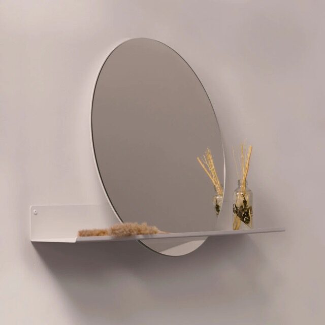 LONDON apaļš spogulis ar integrētu plauktiņu – stilīgs un praktisks risinājums sienai