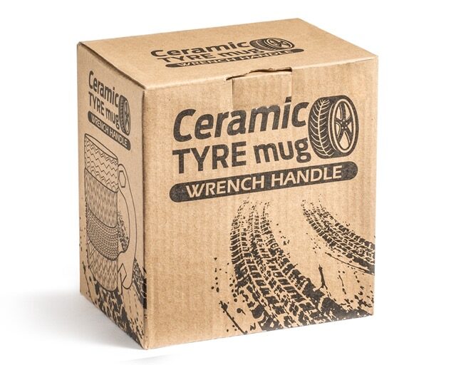 Riepas formas krūze ar uzgriežņu atslēgas formas rokturi piedāvā oriģinālu un tehniski iedvesmotu dizainu, kas apvieno funkcionālu lietojamību ar vizuālu identitāti. Krūzes korpuss veidots kā vertikāli sakrautu riepu imitācija, kur katras “riepas” virsma attēlo dažādus riepu protektora rakstus. Šī faktūra nodrošina ne tikai estētisko vērtību, bet arī labāku saķeri, kad krūze tiek turēta rokās.