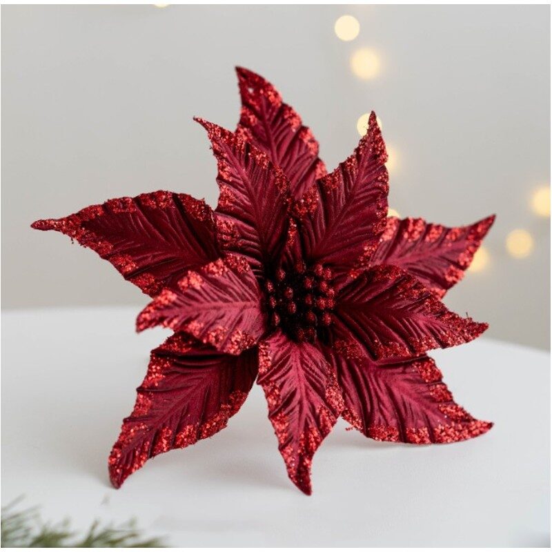 Radiet maģisku un svinīgu atmosfēru savās mājās ar šo dekoratīvo ziedu – ideāls akcents, kas papildina klasisku vai modernu Ziemassvētku interjeru.