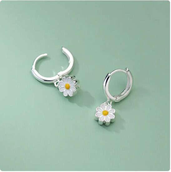 Sieviešu auskari ar margrietiņām – korejiešu stils, elegance