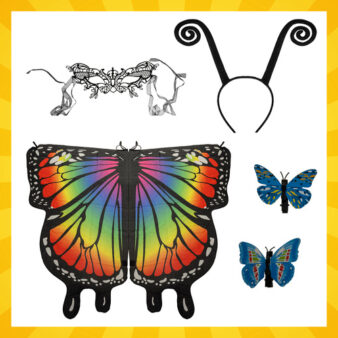 Tauriņa kostīms bērniem 3 daļas ir košs un viegli uzvelkams komplekts, kas palīdz ātri izveidot pamanāmu tēlu dažādiem pasākumiem un rotaļām. Komplektā ietilpst lielie spārni, acu maska un galvas lenta ar taustekļiem, kā arī matu sprādzes, lai koptēls būtu pilnīgs bez papildu piederumu meklēšanas. Kostīms bērniem ir izstrādāts tā, lai tas būtu ērts kustībā un piemērots aktīvai spēlei, dejošanai un lomu spēlēm.