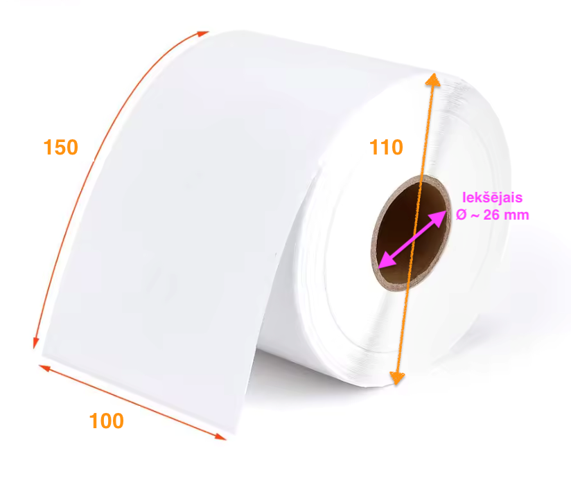 Saderīgie uzlīmju printeri (100 × 150 mm, iekšējais diametrs ~26 mm)